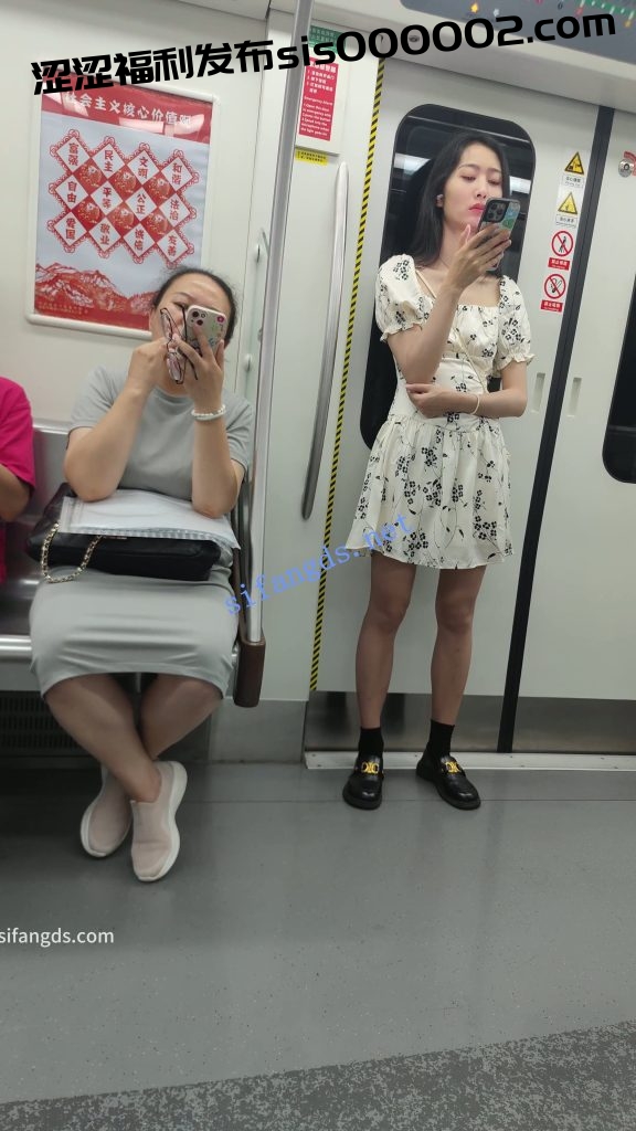 •  白色印花连衣裙小姐姐等地铁抄底,黑色内带翅膀